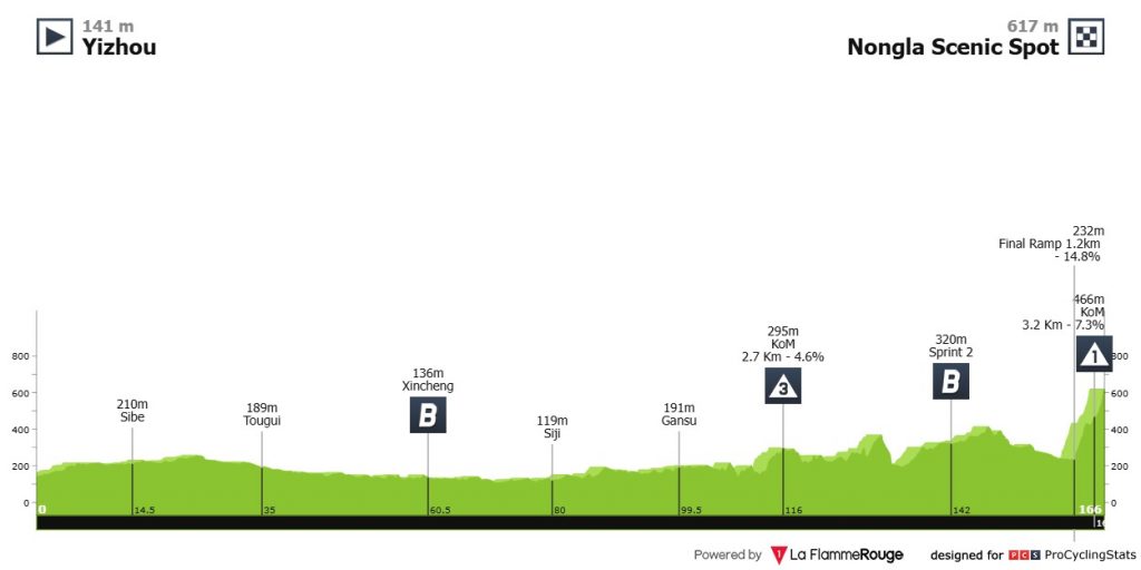 La prueba de China, fiel a la tradición asiática, se celebra sobre seis etapas y tienen una mayoría de jornadas propicias para los velocistas, aunque en etapas como la segunda o la cuarta ese sprint puede ser un poco más reducido por la presencia de algunas dificultades montañosas. Sin embargo, la etapa decisiva debería ser la del sábado, es decir, la quinta etapa, con meta en Nongla Scenic Spot, una ascensión de apenas 3,2 kilómetros, pero que en sus últimos 1.200 metros obligará a los corredores a superar una rampa del 14,8% de pendiente media. Ese es el momento de la verdad.