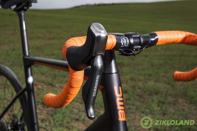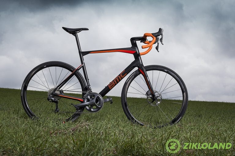 Este modelo de la BMC Roadmachine 01 viene montado con un grupo electrónico Shimano Ultegra Di2, el segundo en la escala del fabricante japonés tras el DuraAce y con un funcionamiento suave y muy preciso. Las llantas son unas 3T Discus C35 Team Stealth Carbon, con un rodar perfecto y sin ningún pero por su ligereza y alta calidad de los bujes. Además, ese perfil medio es el ideal para este tipo de bicis Endurance, ya que además de aportarle una notable estética, no va a molestarnos ni comprometer nuestra estabilidad en días de viento fuerte o moderado.
