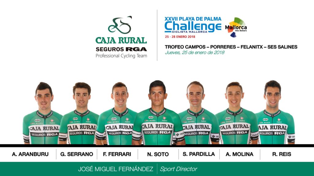 Las cuatro pruebas de la Challenge de Mallorca marcan el inicio del 2018 competitivo para diez de los ciclistas de Caja Rural-Seguros RGA. La prueba servirá para que debuten el colombiano Nelson Soto, el almeriense Cristian Rodríguez y el madrileño Gonzalo Serrano, quien corrió como stagiare en 2017