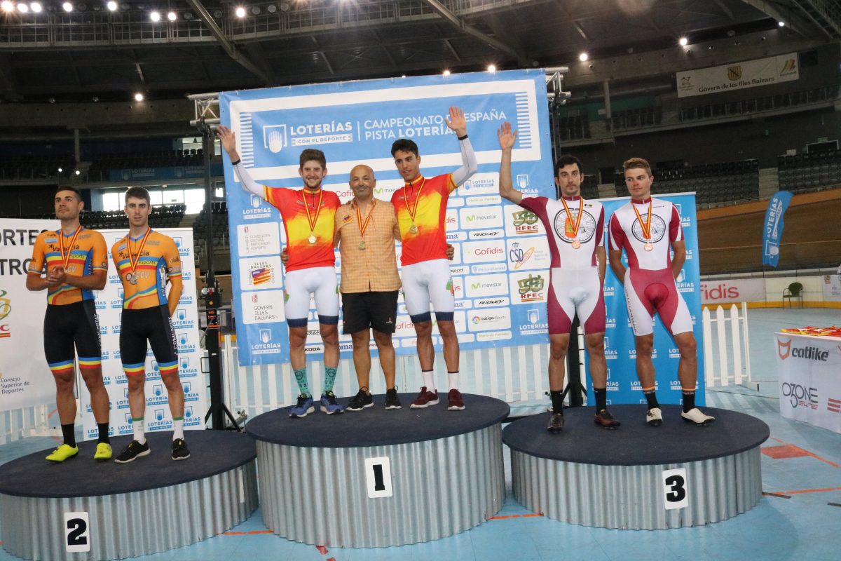 Torres llegaba al repóker, acompañado de Cañellas, en una madison en la que dominó claramente en los sprint –ganaría once de los doce primeros- y sumaría dos veces ‘bonus’ de vuelta ganada, más por ganas de dar espectáculo a su parroquia que por necesidad-, para alcanzar 117 puntos, frente a los 64 de los valencianos Mora-Pelegrí, que tuvieron que rendirse a la evidencia de los baleares, aunque fueron superiores al resto, para lograr la plata. En el último sprint, la pareja castellano-manchega Vicente García de Mateos-Marcos Jurado venció y logró unos puntos que les valían hacerse con el podio, la medalla de bronce.