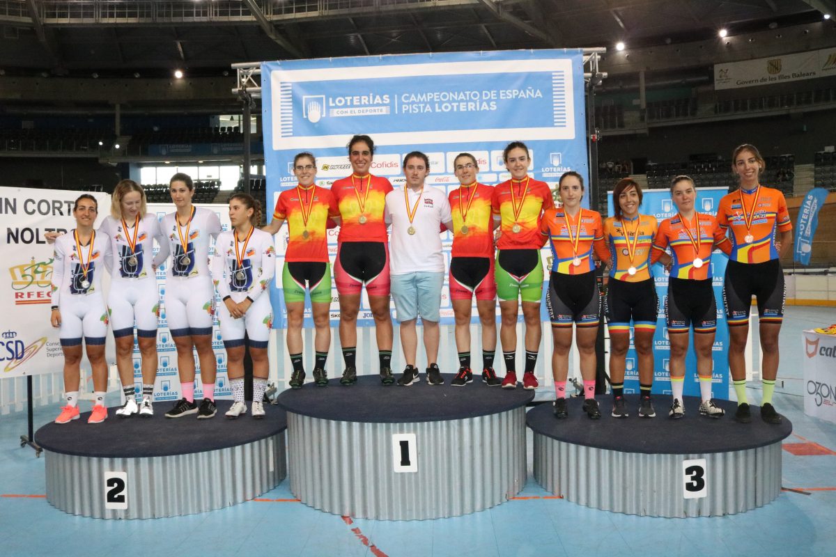 Pasando a la persecución femenina, Euskadi (Ziortza Isasi, Ana e Irene Usabiaba y Ane Iriarte) ratificaba su condición de favorita, superando a Baleares (Iurani Blanco, Mar Bonnin, Catalina Rayó y Marga López). La Comunidad Valenciana completaba el podio, tras haber obtenido ayer directamente el bronce, por descalificación de Murcia.