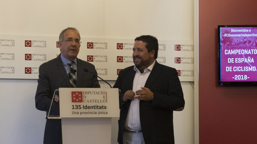 El presidente de la Diputación, Javier Moliner, ha presentado esta mañana, junto con el presidente de la Real Federación Española de Ciclismo, José Luis López Cerrón, el de la Federación de la Comunidad Valenciana, Amadeo Olmos, y el diputado provincial de Deportes, Luis Martínez, la sede de los Nacionales de Ciclismo.