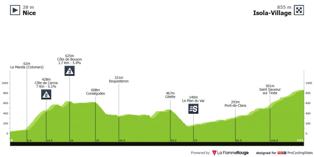 Las fuertes nevadas han llevado a los organizadores a recortar el decisivo final en la cima de Auron. En total, los ciclistas afrontarán únicamente 120 kilómetros, lo que supone que la línea de meta se traslada desde Auron hasta Isola con el único fin de garantizar la seguridad de los ciclistas. Son 18 kilómetros menos.