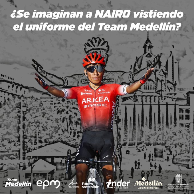 El corredor cuyo destino todavía está en el aire es Nairo Quintana. El escalador, ya ex ciclista de Arkea, puede competir en cualquier momento, puesto que el problema del tramadol del pasado Tour no acarrea ninguna suspensión deportiva. Sin embargo, no está encontrando muchas ofertas interesantes para su futuro. Ahora incluso ha surgido un ofrecimiento desde Colombia: el Team Medellín ha lanzado una campaña con un titular impactante: «¿Se imaginan a NAIRO vistiendo el uniforme del Team Medellín?». Por el momento, Nairo sigue pensando en competir al máximo nivel en Europa… pero la opción de correr en casa está sobre su mesa y es oficial.