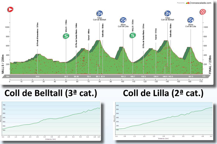 El pelotón Élite-Sub23 tendrá que hacer frente en la Clàssica Xavi Tondo a 172 exigentes kilómetros, con salida y llegada en Valls, en los que tendrán que superar un doble ascenso al Coll de Belltal, de tercera categoría y al Coll de Lilla, de segunda categoría.