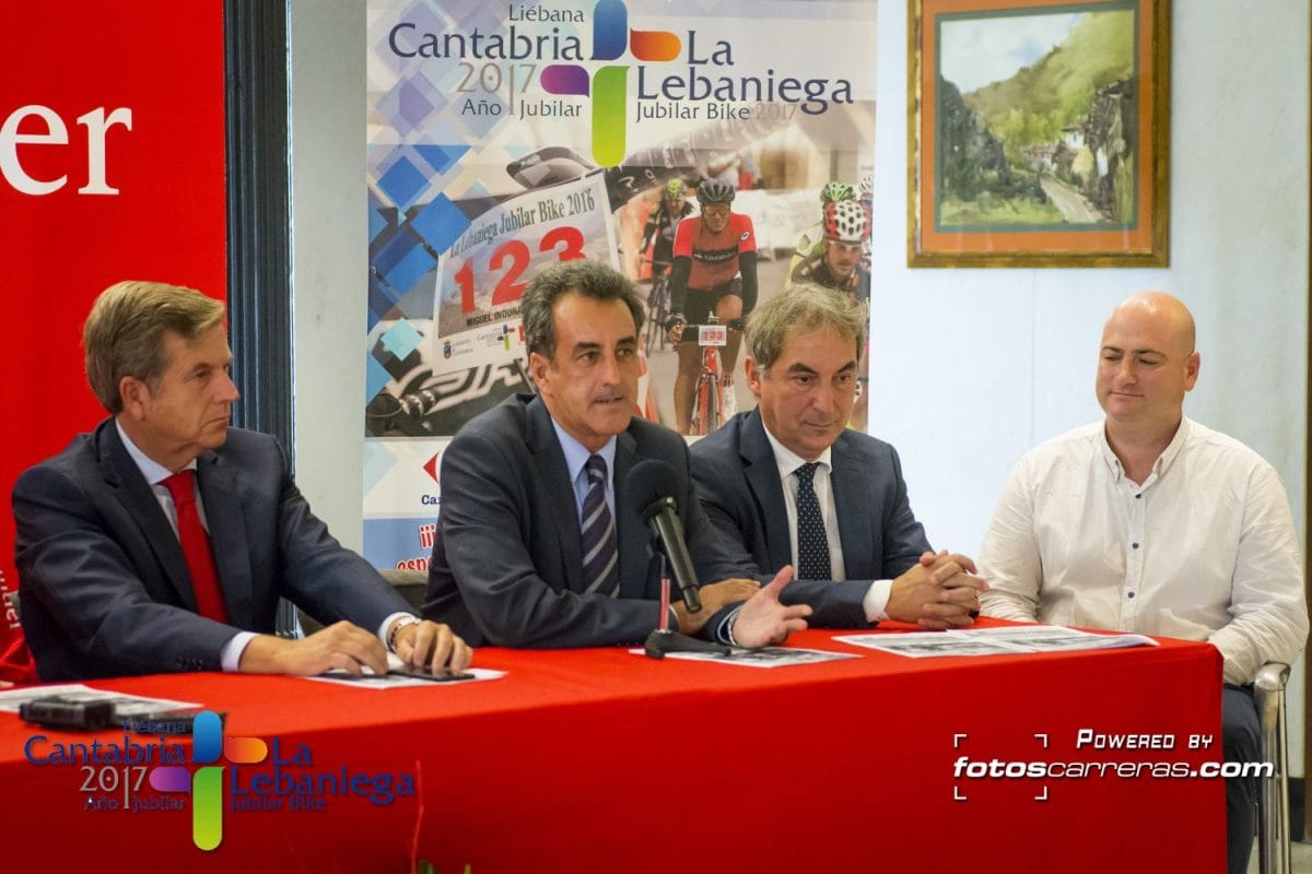 En la oficina principal del Banco de Santander, en la capital cántabra ha tenido lugar el martes la presentación de la III edición de la marcha cicloturista La Lebaniega Jubilar Bike que tendrá lugar el próximo día 30 de septiembre, que contará con la presencia de Miguel Indurain.