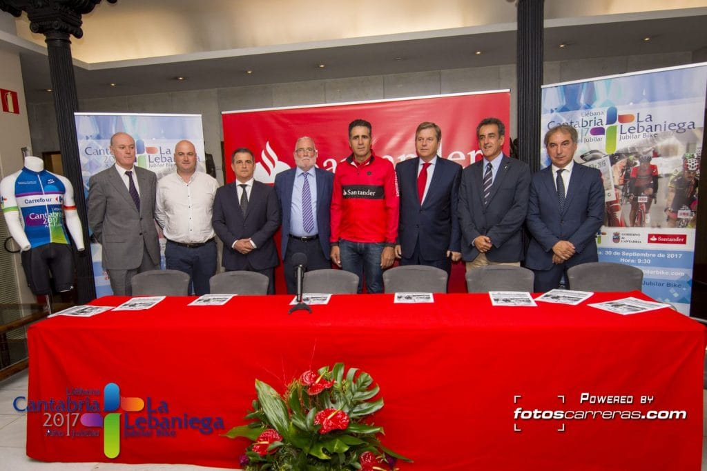En la oficina principal del Banco de Santander, en la capital cántabra ha tenido lugar el martes la presentación de la III edición de la marcha cicloturista La Lebaniega Jubilar Bike que tendrá lugar el próximo día 30 de septiembre, que contará con la presencia de Miguel Indurain.