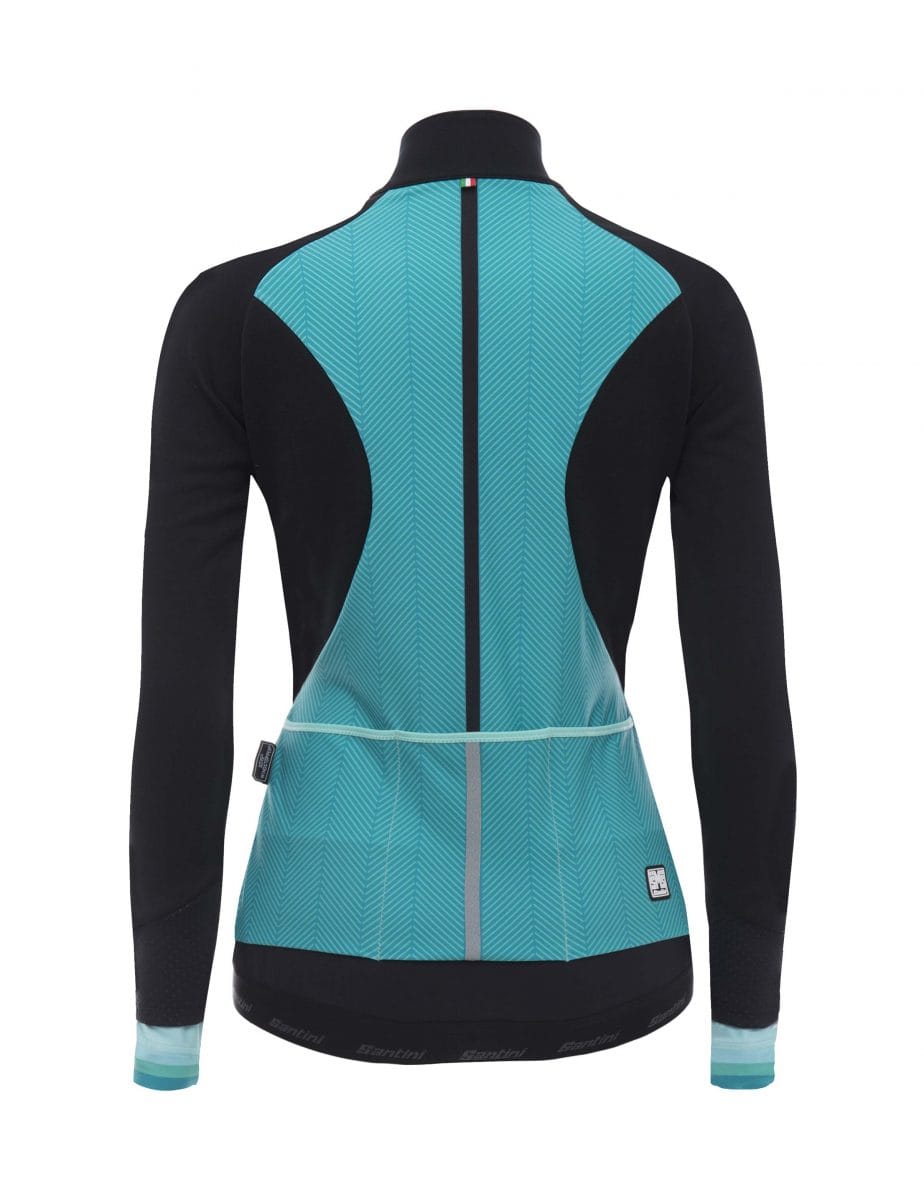 SANTINI_FW1718_Coral2.0_jersey_water_frontEl tejido en termofelpa Lite Pro proporciona aislamiento térmico y una transpirabilidad óptima en todo momento. Los puños están diseñados para que el maillot se mantenga en su sitio evitando que entre aire.