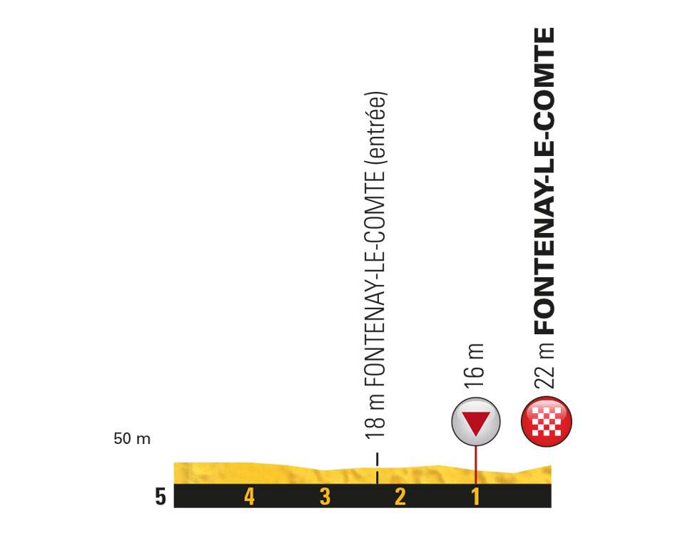 Serán 201 kilómetros de recorrido entre Noirmoutier-en-l’Île y Fontenay-le-Comte con desnivel prácticamente inexistente (una cota anecdótica en la parte final para tener un primer líder de la montaña) donde el principal peligro para el pelotón puede ser el viento, ya que la carrera transcurrirá durante buena parte de la etapa descendiendo de forma permanente por la costa; 110 kilómetros discurren paralelos a las playas de Vendée. Especial atención al tercio en final junto a la Marisma de Poitou.