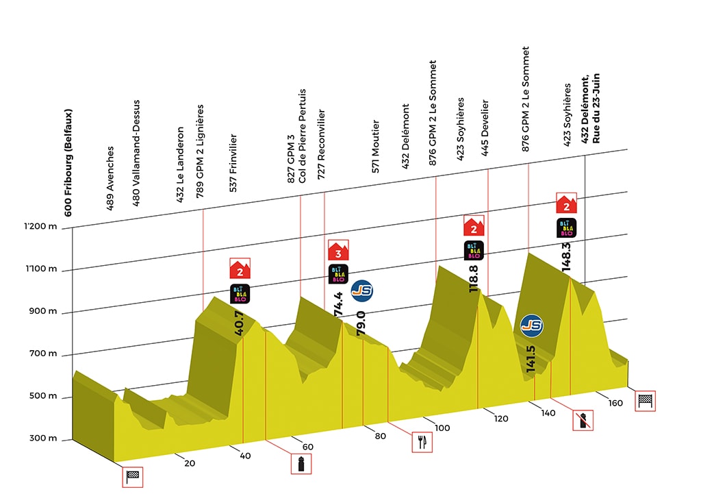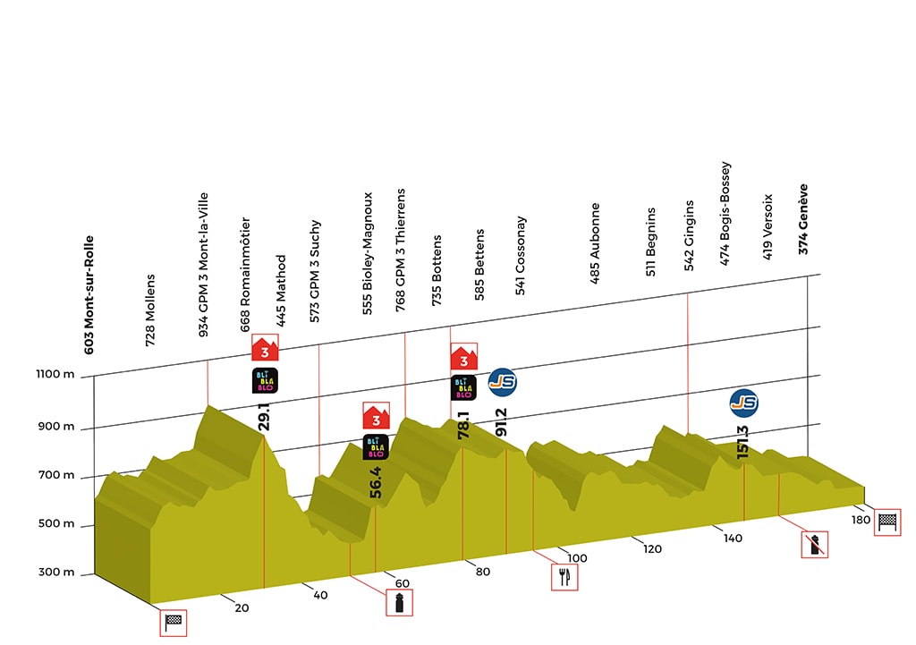 El recorrido estará marcado por la cronoescalada a Villars, en la tercera etapa del viernes, y la llegada a Sion el sábado tras la subida a Basse Nendaz (1ª). Por lo demás no habrá ningún final en alto, casi todo serán días de media montaña y puertos cortos. El prólogo de Friburgo, por su parte, marcará las primeras diferencias y a buen seguro BMC sale con ventaja de él, pues casi todo el equipo está compuesto por buenos contrarrelojistas que también se defienden bien para arriba.